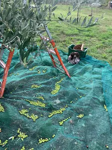 Unter den Olivenbäumen werden große Netze ausgebreitet. Danach werden die Oliven per Hand geerntet. Durch die Netze geht keine Olive verloren. Die Oliven fallen dann sanft auf die aufgespannten Netze und können in Körbe gefüllt werden.