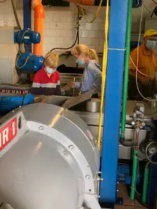 Nun geht der gut geknetete Brei in die Zentrifuge. Hier wird durch Rotation das leichtere Öl vom schwereren und bitteren Vegetationswasser (Trester) getrennt.