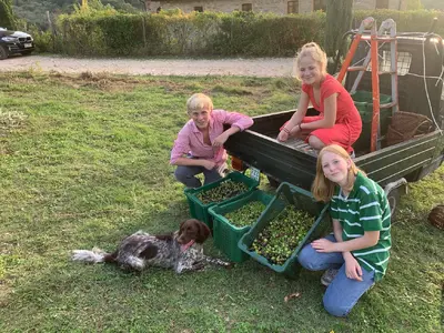Die Beute wird nach der harten Arbeit von den Erntehelfern streng bewacht, denn unser bestes Olivenöl soll ja auch nur unsere Oliven enthalten!